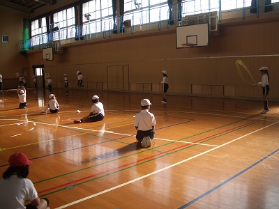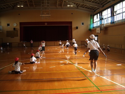 3年生の体育では、なわとびの二重とびに挑戦していました。