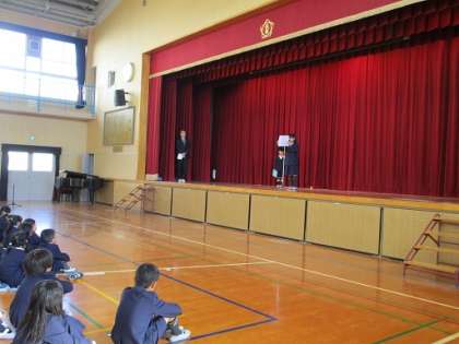 2学期は2年生と5年生の児童でしたが、はっきりと聞いているみんなにわかるように読んでくれました。全校児童の聞く姿勢もとても素晴らしかったです。