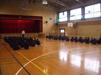 まず4〜6年生が5分以上前に講堂に集合しました。