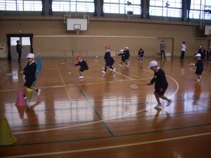 子どもたちはスピードやラケットの角度を調整しながら、いっしょうけんめいに走っていました。