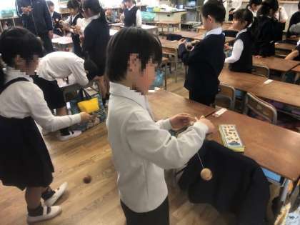 1年生が生活の時間に昔遊び体験(剣玉)をしました。