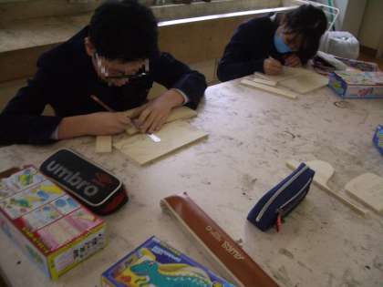 6年生の図工は、卒業制作“テープカッター台”です。