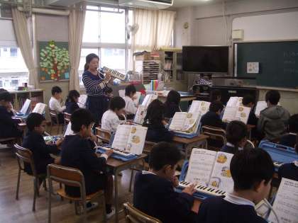 2年生が音楽で鍵盤ハーモニカの練習をしていました。