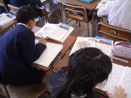 文章と挿絵を見比べながらノートにまとめています。