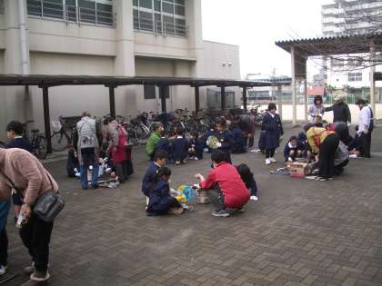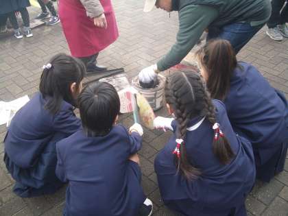 地域の方々にお越しいただき、3年生が昔の道具(七輪)の使い方を教えていただきました。