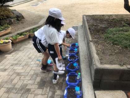 毎朝水をあげている子どもたちは、チューリップの芽が出てきたので大喜びでした。