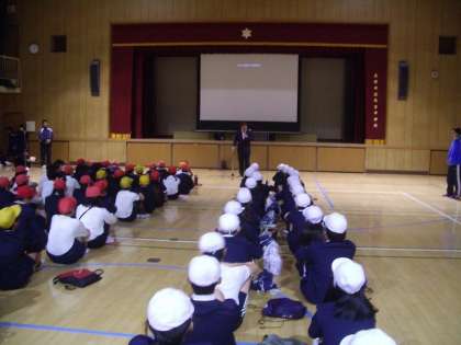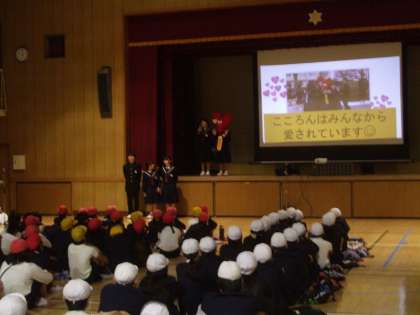 最初に講堂で開会式があり、長吉中学校の紹介などがありました。