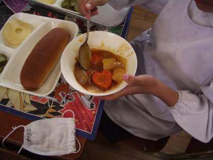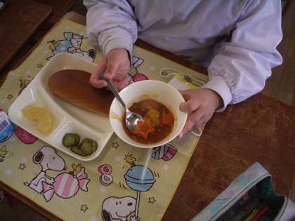 今日のシチューには、星型やハート型の“ラッキーにんじん”が入っていました。
