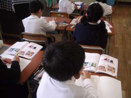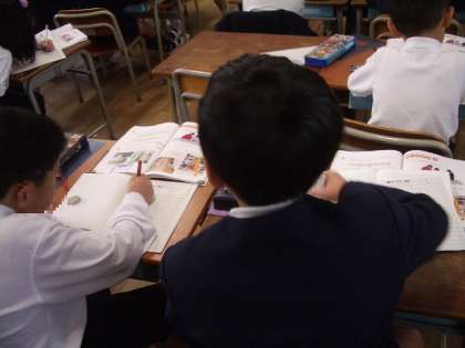 どれぐらいの長さかを推測してワークシートに書き込んでいます。
