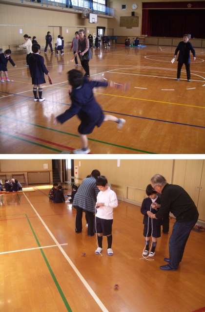 子どもたちは肩をたたきながら楽しくお話をしていました。