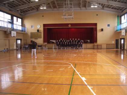 水曜日の参観に向けて、6年生は講堂で合奏や合唱の練習をしています。