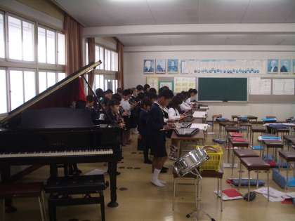 2月12日(水) 3年生の音楽は、音楽室での合奏練習です。