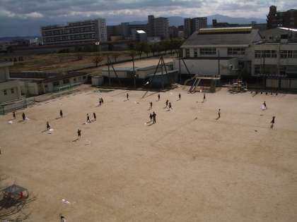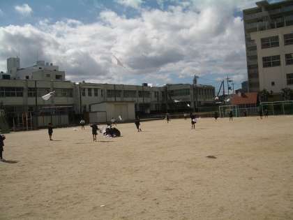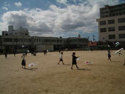 今日は風が強かったので、1年生が運動場に出てたこあげをしていました。