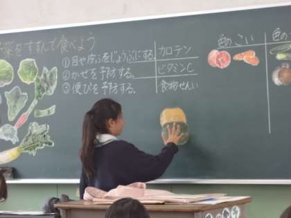 5年生は野菜について学習しました。野菜の素晴らしい働きを知り、色の濃い野菜と薄い野菜に分けながら野菜を食べることの大切さを学びました。