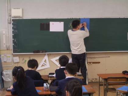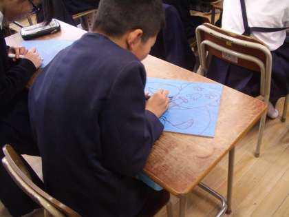 4年生は版木に下書きができたので、今日から彫刻刀を使って彫り始めます。