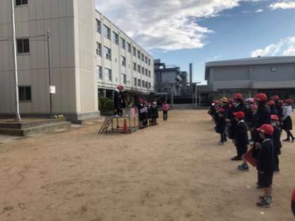 今日は今年度最後のスマイル集会だったので、集会委員がみんなの前であいさつをしました。