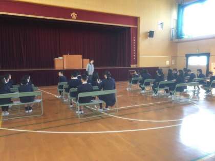 明日から2週間の学校休業になるということで、6年生が体育館で卒業証書授与の練習をしました。