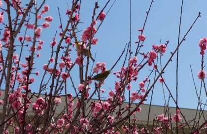 3月は、梅が咲き、メジロもやってきました。