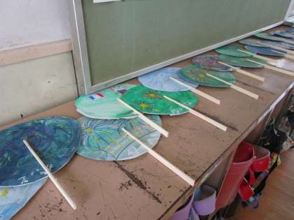 3年生ではうちわを制作しました。とても涼しげで使いたくなります。