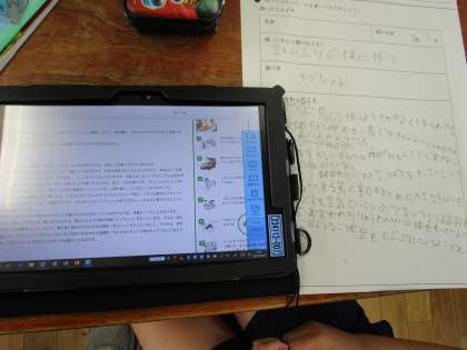 7月3日(金)、3年生は国語の授業でタブレットを使って調べ学習をしました。