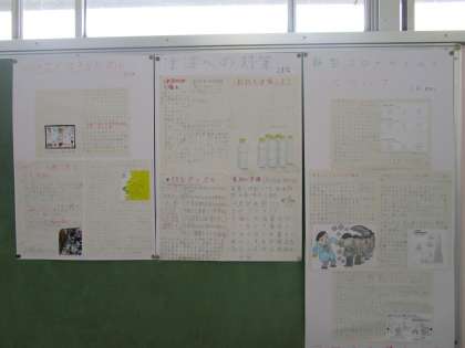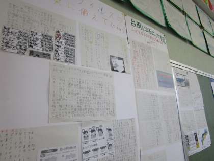 6年生はグループに分かれて調べ学習をし、新型コロナウィルスや台風による災害、地震・津波等について壁新聞にまとめました。