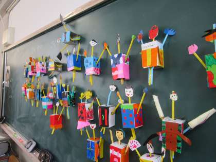 2年生は図工の時間、動くおもちゃの「パタパタストロー」を制作。個性的な楽しい作品がたくさんできました。今回は腕が縦に動く作品を作りました。次回の図工の授業では、腕が横に動く作品を作る予定です。