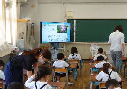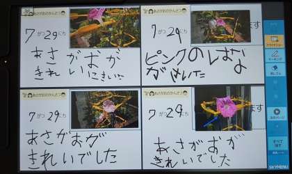 1年生の子どもたちは、まだまだ慣れていないのですが、タブレットを使って自分なりに考えて、観察記録を完成しようと頑張っていました。