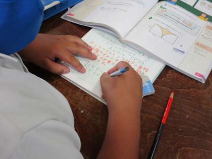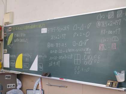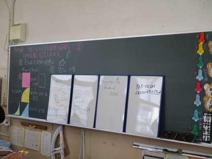 今日は、6年生の研究授業がありました。6年生の算数は、習熟度別学習を行っており、今日は、クラスを3つに分けて複雑な図形の面積を求める授業を行いました。縮小した複合図形を手に取ったり、タブレットを使って解き方を考えたり、ホワイトボードにやり方をまとめたりしながら学習していました。どの児童もよく考えながら学習していました。