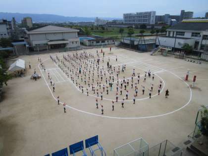 10月4日は本校の第51回運動会です。(上の写真は運動会全体練習の様子です。)児童にも連絡しましたが、今日は運動会について連絡をいたしますのでご覧ください。