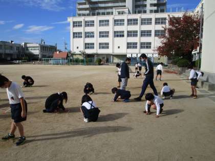 3年生は、現在「かげと太陽」の単元を学習していますが、今日は日なたと日かげの地面の温度の違いや時間による温度の違いについての実験をしています。1時間目は、一人ずつ温度計を持って日なたと日かげの地面に温度計を差し込んで温度を測っていましたが、太陽が当たるか当たらないかでも明らかに気温が違うということも体感していました。次は、4時間目に計測する予定です。