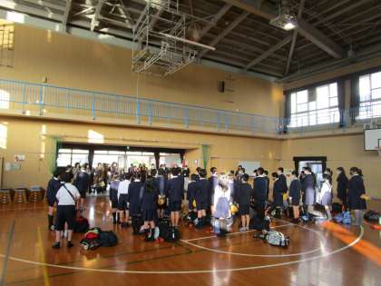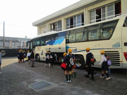 今日から6年生の修学旅行。天気も良く、朝早くから6年生は元気に登校してきました。たくさんの保護者の方がお見送りに来てくださいました。校長先生の話の後、児童代表のあいさつがあり、定刻の8:00を少し過ぎて出発しました。今日と明日、修学旅行の様子を随時アップしていきますのでご覧ください。