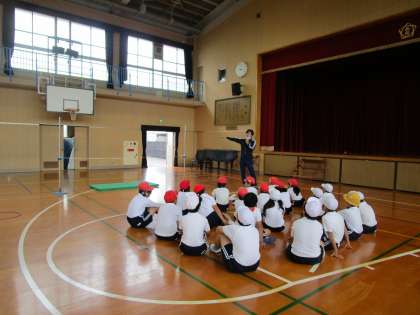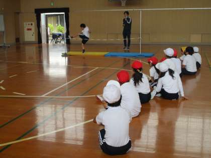 まず、準備体操をしてから跳び方のポイントを聞きました。