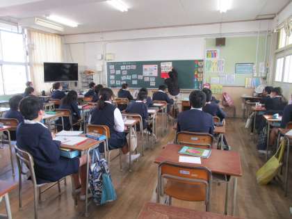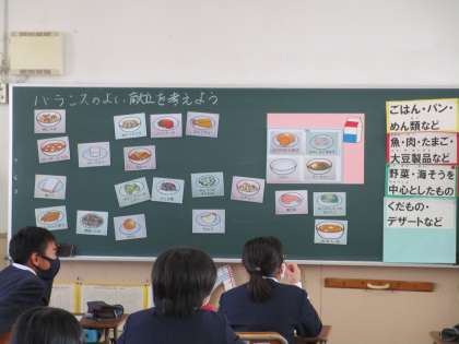 本日、5・6年の指導に栄養教諭の方が来校されました。ごはん・パン等の主食、肉・魚等の主菜、野菜・海藻類等の副菜をバランスよく食べることの大切さについてご指導いただきました。児童はいろいろな質問に対して積極的に答えていました。栄養教諭の先生方どうもありがとうございました。(写真は6年生の授業の様子です。)