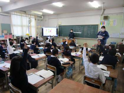 12月15日(火)、1年生は朝から国語科の学習をしていました。今日は、「おとうとねずみチロ」の読み取りで、チョッキが届いた時のチロの気持ちを想像しながら、学習を進めていました。みんな積極的に挙手をし、発言していました。