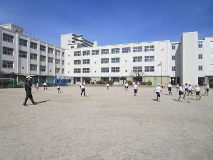 今日の3時間目、運動場では3年生が体育の授業をしていました。運動場に大きく描いた正方形の中で、1人ずつ自分のボールをキープしながら他の児童のボールを正方形の外に出すというゲームをしていました。気を抜くとけられてしまうので、ドキドキです。