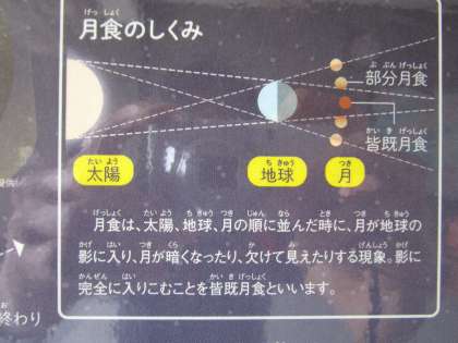 本日5月26日(水)に見える満月は、今年地球に最も近づくスーパームーン。しかも、太陽・地球・月が一直線に並び、月が地球の影に完全に入り込んだ現象(皆既月食)が見られます。学校の玄関ホールには、校長先生が、朝日小学生新聞の記事をもとに、今日の皆既月食の情報を書かれました。それによると、