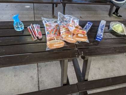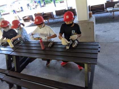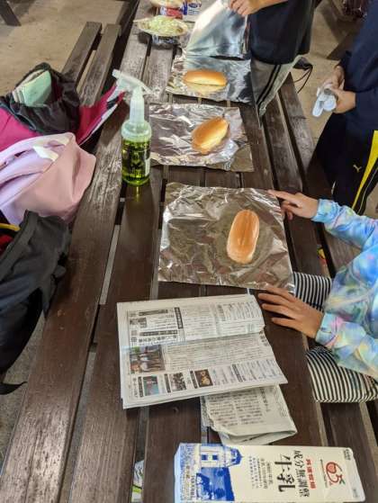 中にウインナー等の材料を入れて、ケチャップ等も入れて、アルミホイルで包みます。