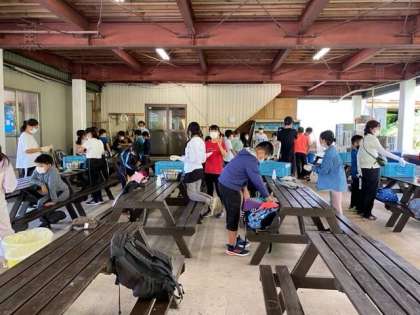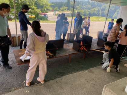 材料を用意する係や火を起こす係などに分かれて、判で協力して作っていきます。