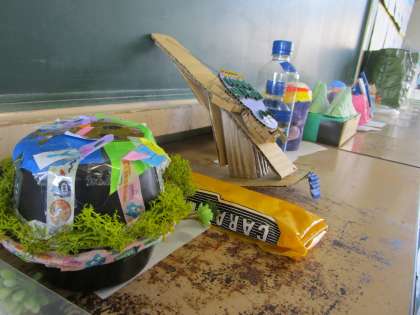 教室の後ろには、夏休みの宿題の絵日記や作品が飾られています。
