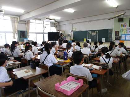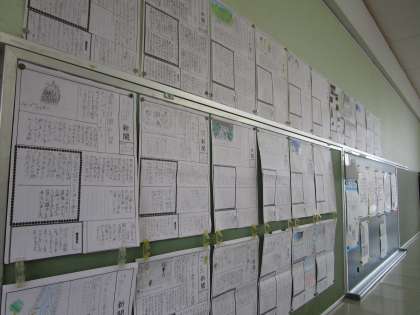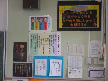 10月1日(金)、5年生の朝の会の様子です。前で今日の日直の児童が司会をしていました。それから、清潔調べ。係の人が前に出てきてハンカチや鼻かみ、つめの様子などをチェックきていました。その後、学級目標や今週のめあてなどをみんなで確認。最後に、宿題を頑張っている児童の名前を担任の先生が発表していました。後ろの壁面には林間の様子を書いた新聞が掲示されています。