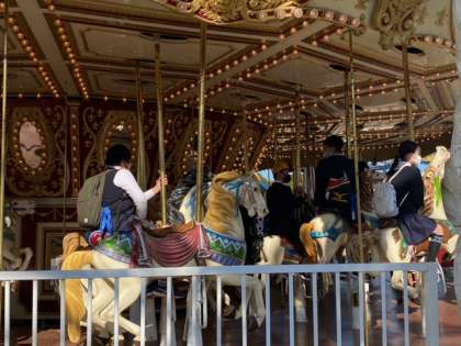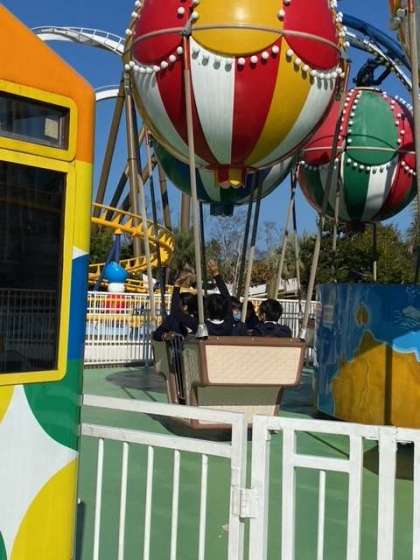 園内ではグループでの活動です。いろいろな乗り物に乗れて楽しいひと時を過ごしています。