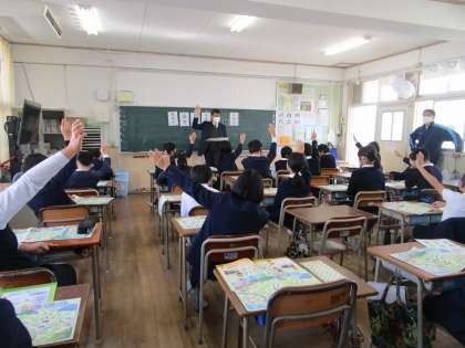11月24日(水)3時間目、6年生は租税教室がありました。税務署の方が来校され、税について詳しく説明してくださいました。「わたしたちのくらしと税」という冊子を配付してくださり、それにはさんである資料を使い、自分が町長になったつもりで、必要な施設を町の地図の中に貼っていきました。児童は、病院や学校、消防署などの施設を自分なりに考えて貼っていました。その後、もし、税がなかったら、どんな町になってしまうかというアニメを見て、税について考えていました。とても勉強になったと思います。来校してくださった税務署の方、本当にありがとうございました。