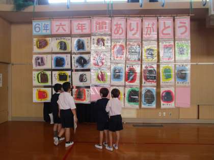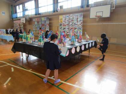 今日は、児童の作品展鑑賞会がありました。学年ごとに順番に他の学年の作品を鑑賞し、友だちの良いところを見つけていました。
