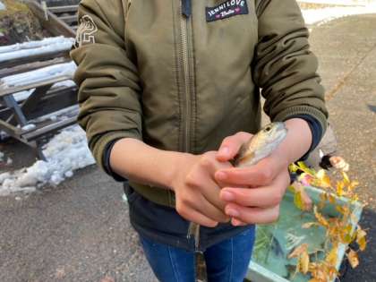 魚つかみをしました。少しぬるっとしてつかみにくかったですが、何とか捕まえることができました。