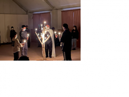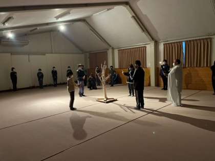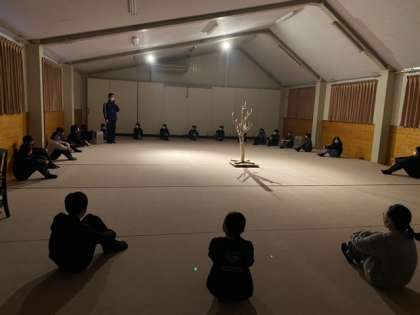 多目的室で、楽しみにしていたキャンドルファイヤーが始まりました。