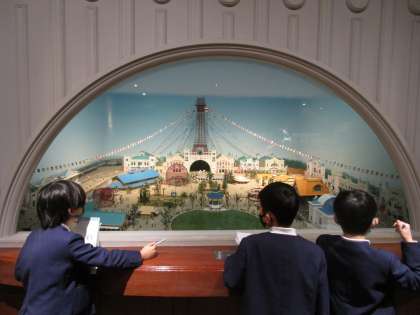 今日は3年生の社会見学。地下鉄に乗って天神橋筋六丁目まで行きました。まず、「くらしの今昔館}を見学しました。大阪市の昔の様子がジオラマで展示してあり、児童は熱心にメモを取っていました。戦後、住むところがなく、廃車になったバスで暮らしていることに驚いていました。