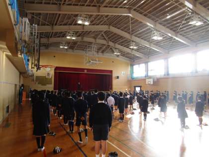 12月24日(金)、今日は2学期の終業式がありました。まず、2・5年生の児童が2学期を振り返り、作文を読んでくれました。読み終わった後、みんなから拍手をしてもらいました。その後、終業式が始まり、校長先生や生活指導の先生からのお話がありました。本日、冬休みの過ごし方についてプリントを配付していますのでご覧ください。
