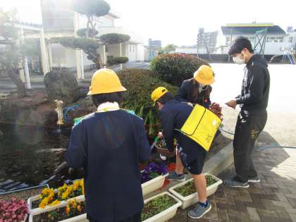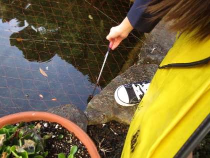 1月12日(水)1時間目、4年生は理科の授業で運動場に出ていました。冬の植物や生き物の観察で、探検バックを持って木々や鯉の様子をメモしたりスケッチしたりしていました。鯉の池の水温は8度と低く、「鯉の動きが鈍いなぁ。」とつぶやいていました。
