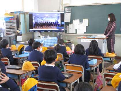 2月25日(金)5時間目、オンラインありがとう集会がありました。各学年から歌や演奏、劇などのプレゼントがありました。また、1年生からは、金メダルのプレゼント!スマイル班からは寄せ書きのプレゼントがありました。