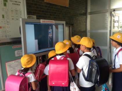 9月4日(水) 正門のところで夏休みの作品を電子黒板を使って紹介しています。登校時や休み時間、下校時に、子ども達は他の学年や学級の人たちの作品を映像で鑑賞しています。来週まで正門の玄関で続ける予定ですので、ご来校の際、どうぞご覧ください。